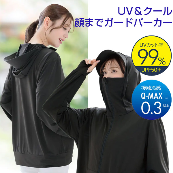 話題の品 UV&クール顔までガードパーカー 忍者パーカー レディース UVカット UV対策 ニンジャパーカー 紫