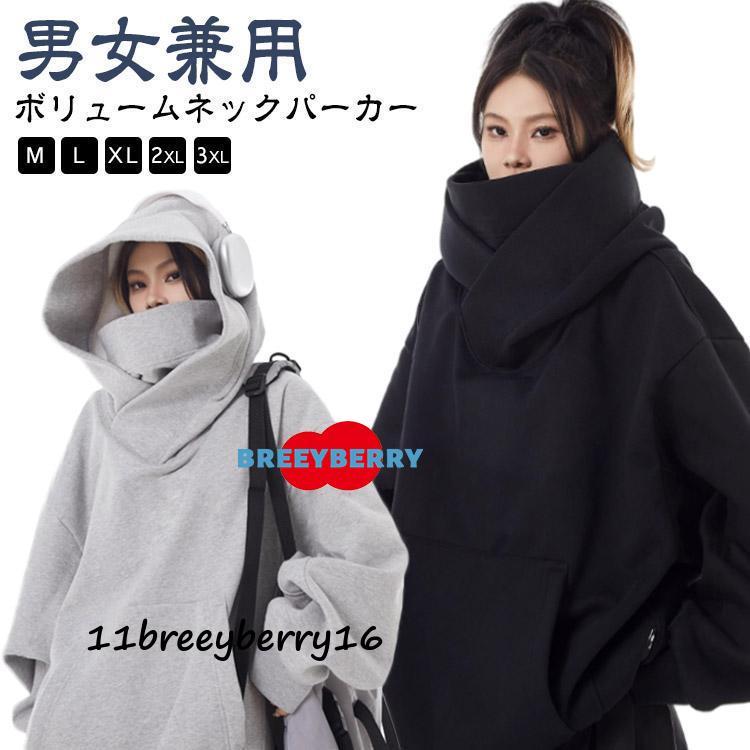 ボリュームネックパーカー フード付き パーカー レディース 男女兼用 機能的 メンズ プルオーバー 忍者パー