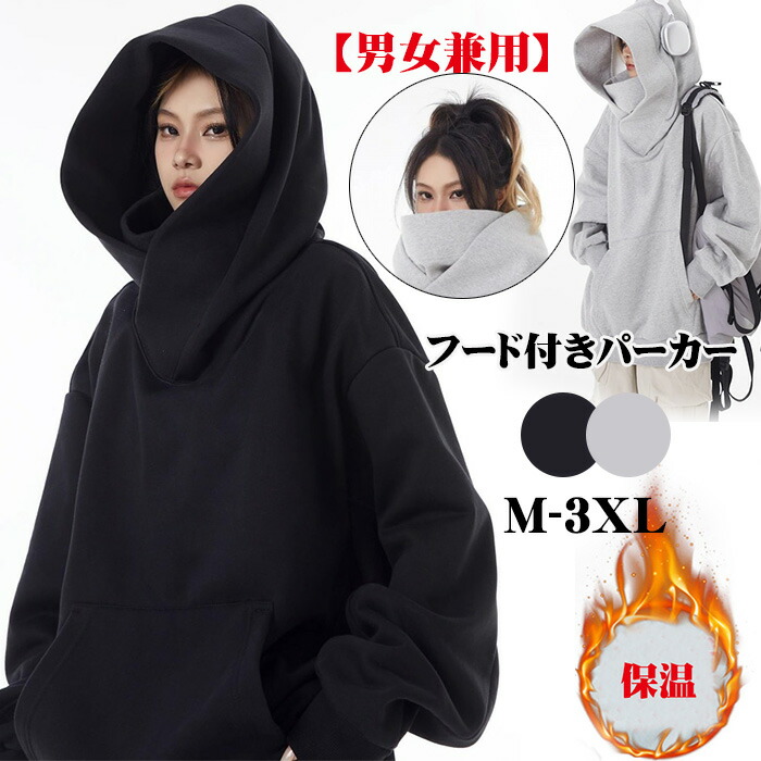 メンズ レディース 忍者パーカー ボリュームネックパーカー パーカー 男女兼用 保温 機能的 通学 防寒 裏起