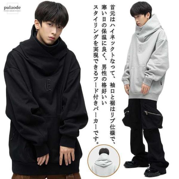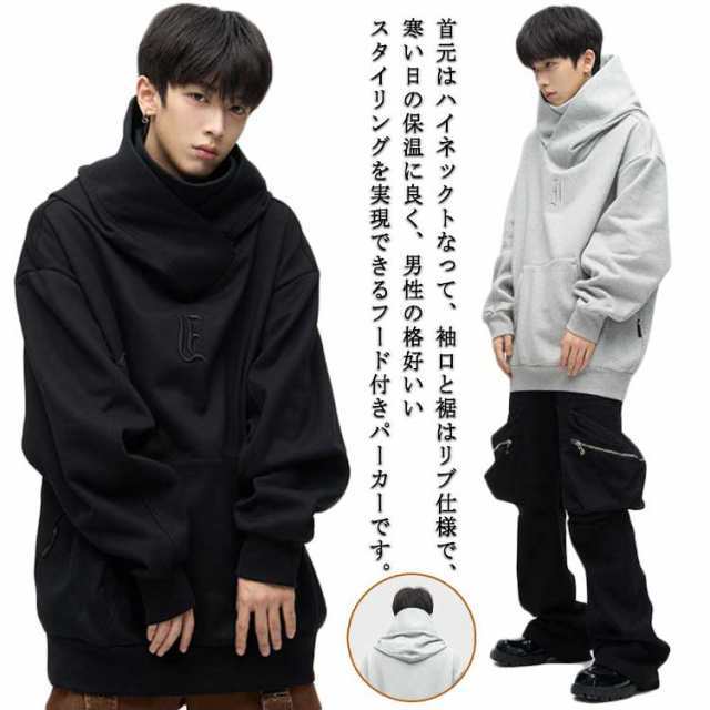 ボリュームネックパーカー メンズ 忍者パーカー ハイネックパーカー タートルネック トレーナー おしゃれ
