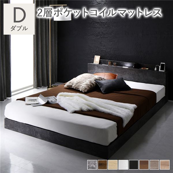 ダブルベッド グレー 灰色 ベッド 2層ポケットコイルマットレス付 ストーングレー 灰色 宮付 すのこベッド