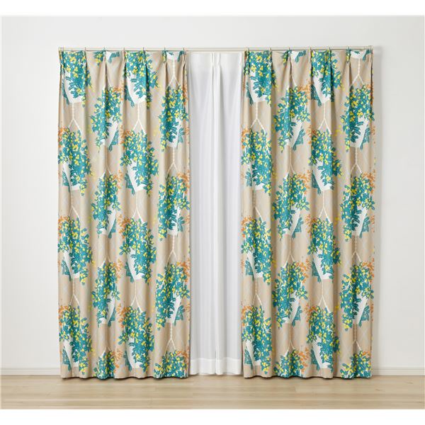 遮光カーテン 幅150cm×丈115cm リーフ柄 1枚 洗える ウォッシャブル 日本製 国産 アジャスターフック タッ