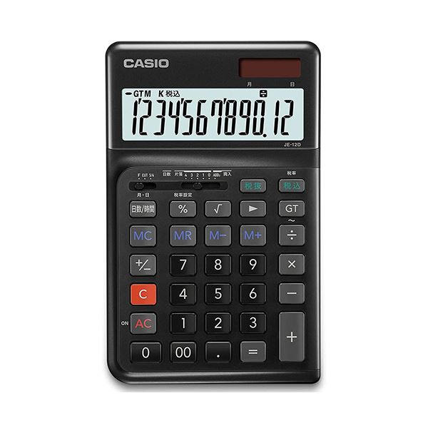 カシオ 人間工学電卓 12桁ジャストタイプ ブラック JE-12D-BK-N 1台 黒 送料無料