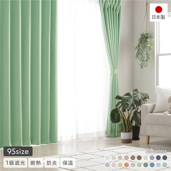 1級遮光 防炎 ドレープカーテン 単品 幅150×丈115cm 1枚入 グラス 洗える ウォッシャブル 無地 国産 日本製