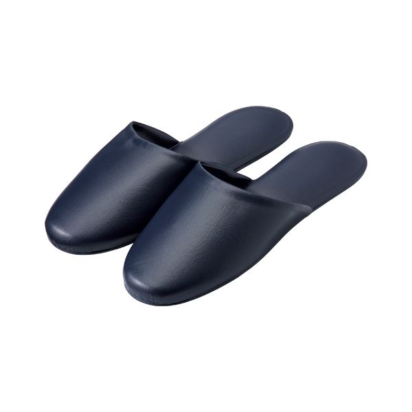 オーミケンシ レザー調スリッパ 10足組 ダークブルー 青 糸切れの心配なし 熱圧着で加工された、快適な履き