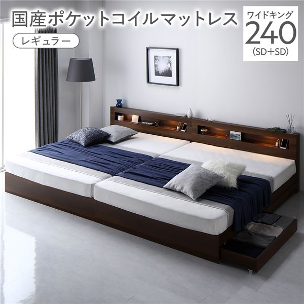 キングサイズベッド 茶色 ブラウン 茶 ベッド ワイド キングベッド 240 SD+SD 国産 日本製 国産ポケットコ