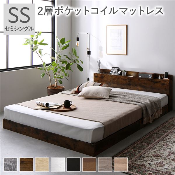 セミシングルベッド ベッド 2層ポケットコイルマットレス付 ヴィンテージブラウン 宮付 すのこベッド
