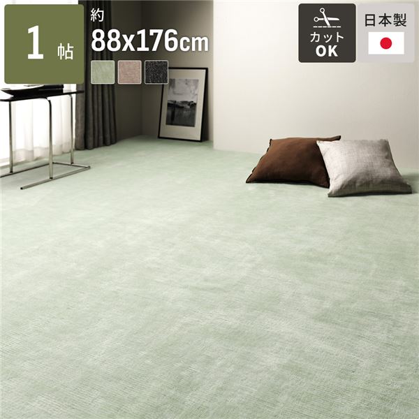 ラグ マット 絨毯 江戸間1畳 約88×176cm グリーン 日本製 国産 フリーカット ホットカーペット対応 床暖房