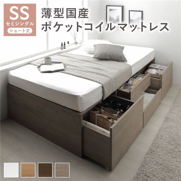 セミシングルベッド グレー 灰色 ヘッドレス チェスト ベッド ショート丈 グレー 灰色ジュ 薄型国産 日本製