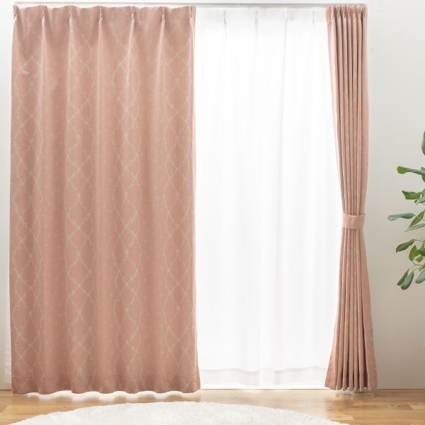 遮光 カーテン 2級 〔 約 幅200 cm 丈178 cm 1枚 〕 ピンク 洗える ウォッシャブル 形状記憶 ドレープカー