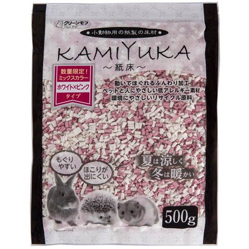 クリーンモフ 小動物用床材 KAMIYUKA 紙床 ミックス ホワイト×ピンク(500g)[小動物の牧草・敷材]