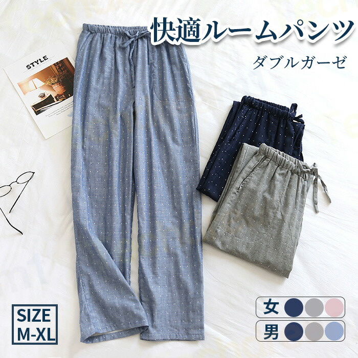 ルームパンツ ルームウェア 春 夏 秋 冬 メンズ レディース リラックスパンツ 長パンツ ナイトウェア ダブ