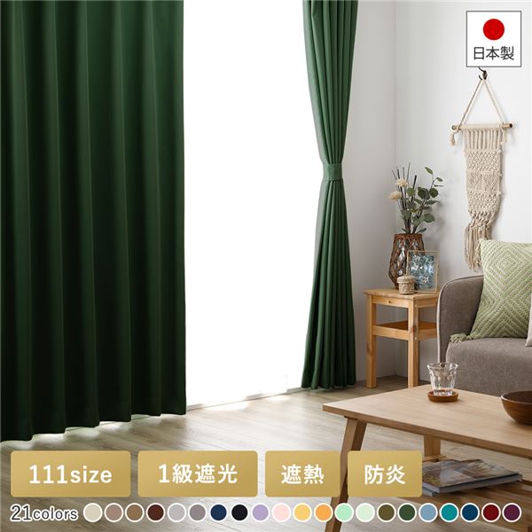 1級遮光 防炎 ドレープカーテン 単品 幅100×丈110cm 2枚入 モスグリーン 洗える ウォッシャブル 無地 国産