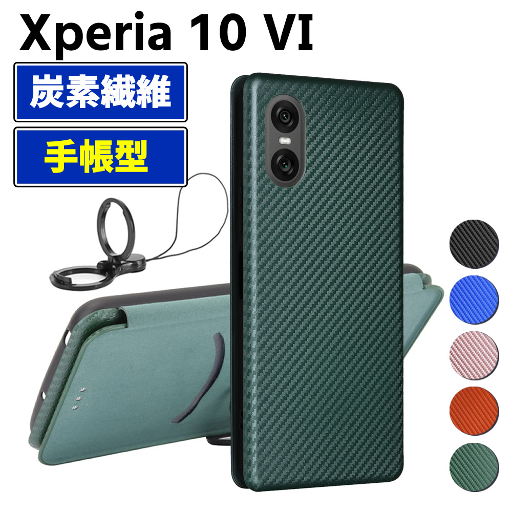 Xperia 10 VI SO-52E 手帳型 薄型 カーボンファイバー スマートフォン用ケース 炭素繊維 カバー TPU 保護バ