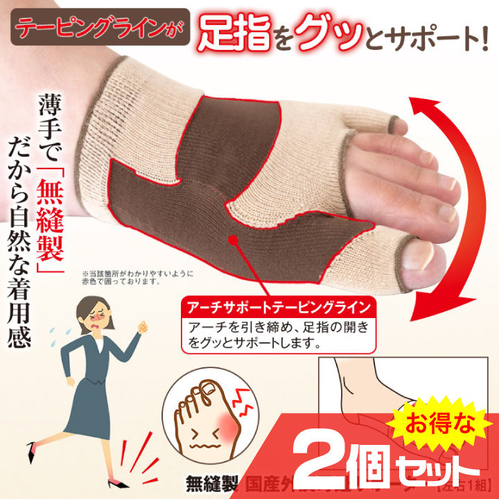 無縫製 国産外反母趾サポーター 2個セット 足指サポート テーピングサポーター 快適 足指開き 着用感快適