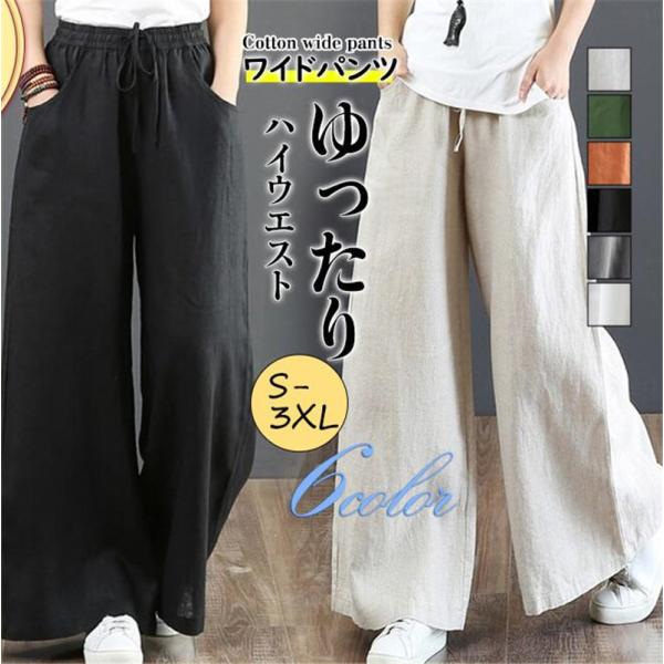 ワイドパンツ レディース ウエストゴム ボトムス カジュアル ストレッチ 大きいサイズ ゆったり ひんやり