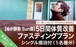 【ふるさと納税】【ぬか酵素Sun燦】5日間体質改善ファスティングプラン(1名様分)シングル宿泊付き