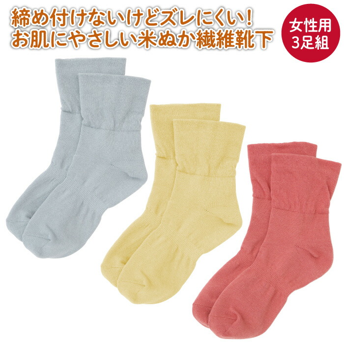 送料無料 【TV紹介】 日本製 歩くぬか袋 締め付けない靴下 3足組 女性用 肌にやさしい 米ぬか靴下 ギフト