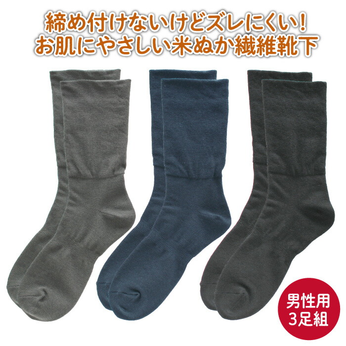 送料無料 【TV紹介】 日本製 歩くぬか袋 締め付けない靴下 3足組 男性用 肌にやさしい 米ぬか靴下 ギフト