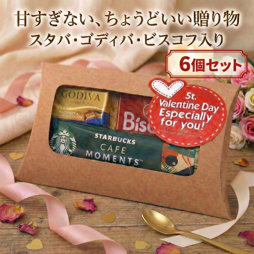 バレンタイン プチギフト 6個セット 義理 チョコ スタバ×ビスコフ×ゴディバ 個包装 職場 配り用 まとめ買い