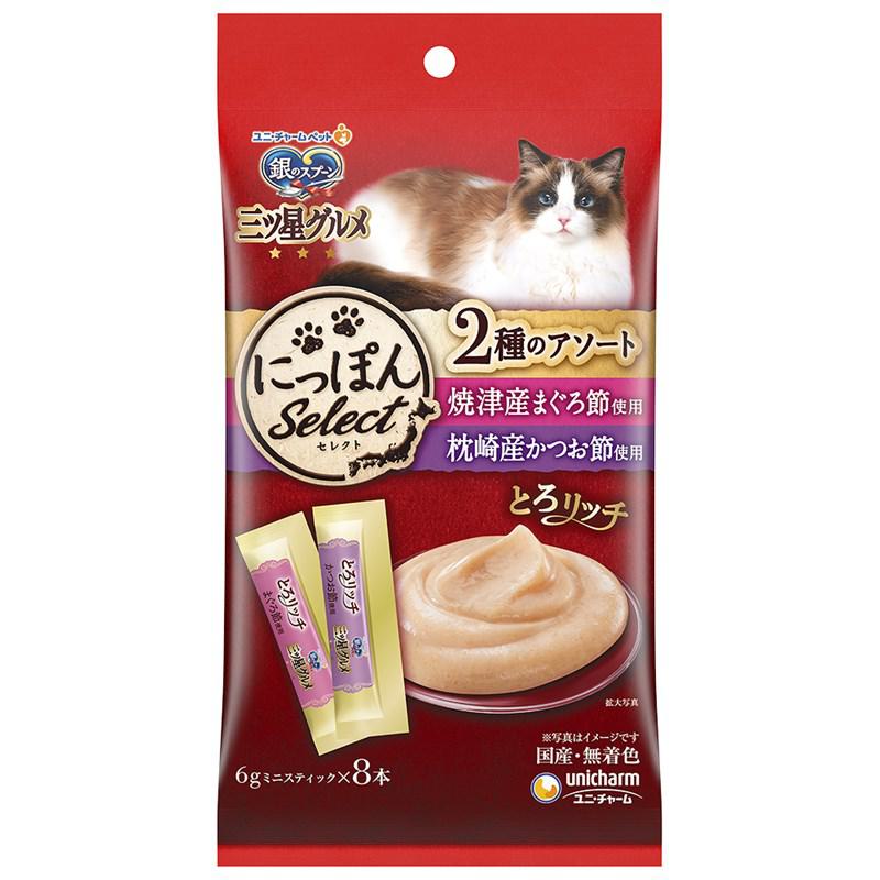 ユニチャーム 銀のスプーン三ツ星グルメおやつ とろリッチ まぐろ節 & かつお節使用48g(6g×8本)