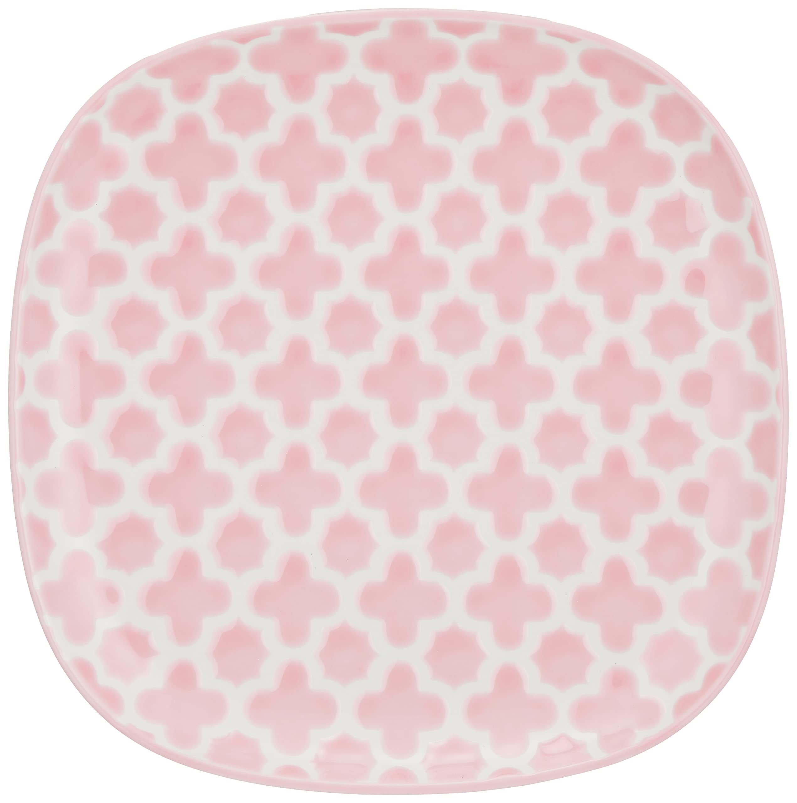 石丸陶芸(HASAMI PORCELAIN) 波佐見焼 和山窯 プレート 皿 取皿 約15CM モロッカン 正方形 ピンク 電子レン