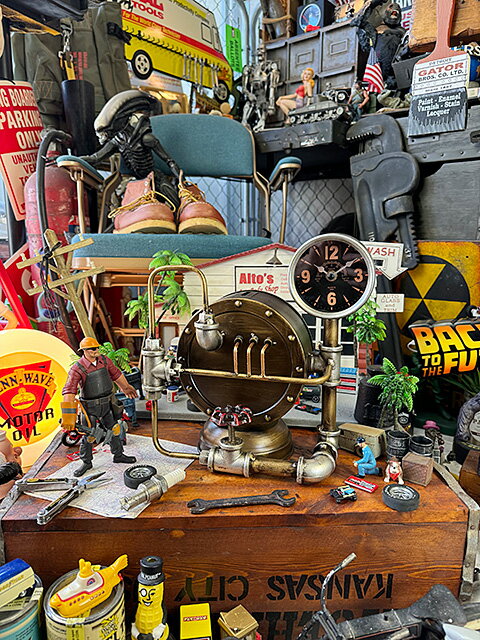 スチームパンク スタンドクロック (ブラック文字盤) 置き時計 貯金箱 アメリカン雑貨 アメリカ雑貨・・・