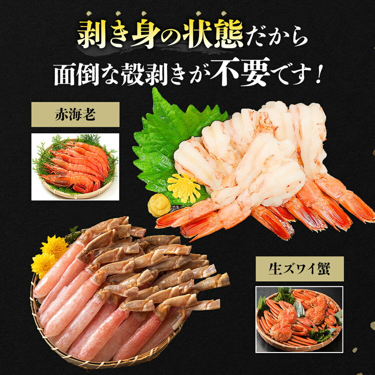 生ずわい蟹ミニポーション 500g 特大海老ポーション 30尾 送料無料 食べ比べセット 4〜5人前・・・