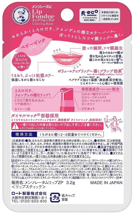 【レビュー投稿で100円OFFクーポン】ロート製薬 メンソレータム リップフォンデュ ベビーピンク 3.2g リップケア フェイスケア スキンケア