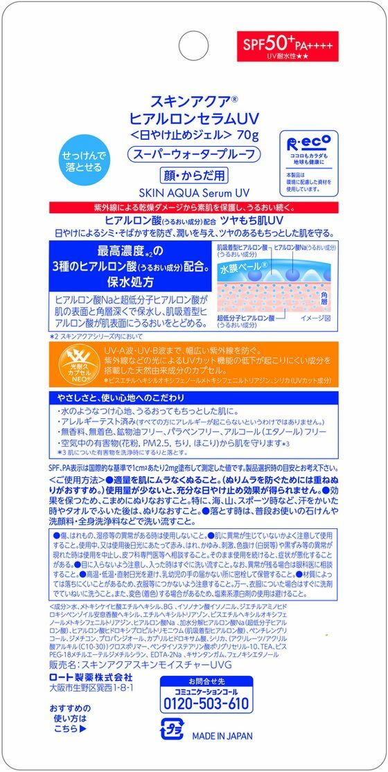 【レビュー投稿で100円OFFクーポン】ロート製薬 スキンアクア ヒアルロンセラム UV 70g UVカット 日やけ止め サンケア UVケア スキンケア