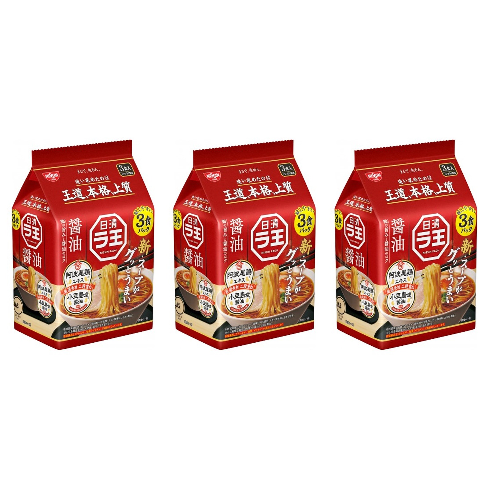 日清 ラ王 醤油 3食入×3個 袋麺 インスタント 番組紹介 サタプラ ひたすら試してランキング