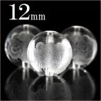 1粒売り 天然石 透明水晶 クォーツ 磨砂刻印丸ビーズ 12mm 招き猫 t230