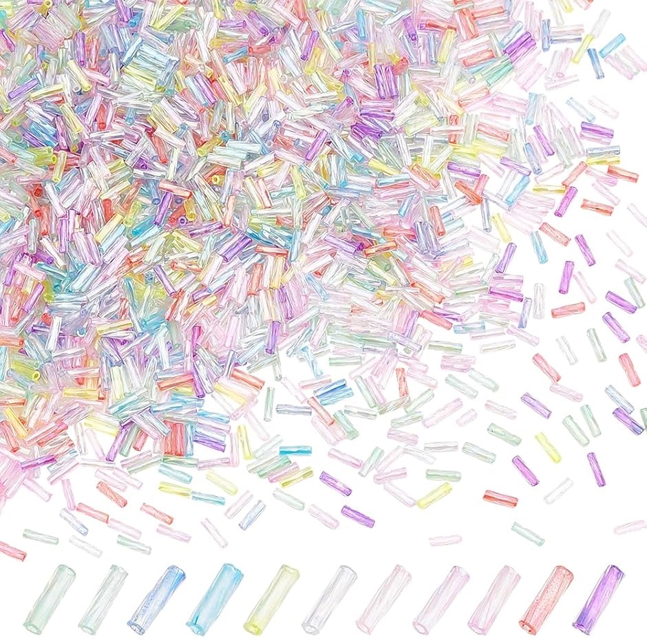 約1760個 竹ビーズ シードビーズ 11色 筒状 淡い色 ガラスビーズ アクセサリーパーツ ジュエリー用 糸通しビーズ MDM(カラフル)