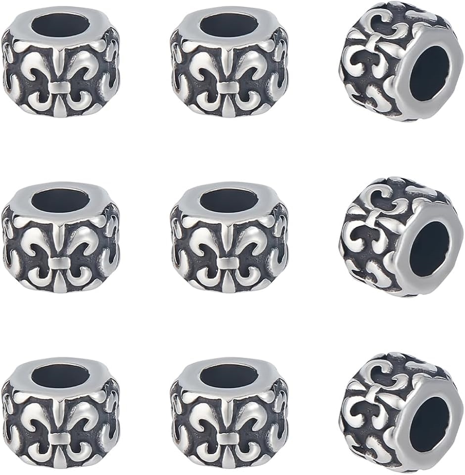 10個 ヨーロピアンビーズ ステンレスビーズ コラムビーズ スペーサービーズ 大きな穴 MDM(アンティークシルバーカラー, 9mm)