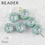 チェコビーズ プラムビーズ グリーン ターコイズ・シルバー 10個 約9mm ガラスビーズ パーツ アクセサリー ハンドメイド 手芸 手作り 素材