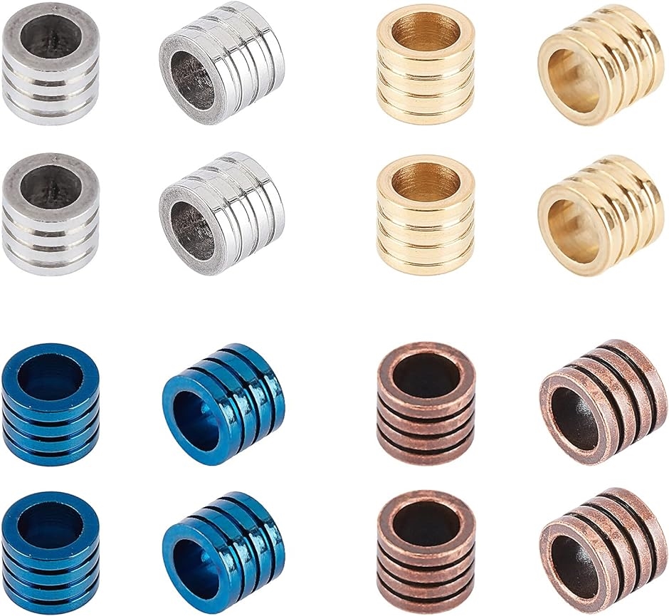 約16個 4色 コラムビーズ ステンレス 円筒形 ロンデルビーズ シリンダービーズ スペーサービーズ 大穴ビーズ( 4色-16個)