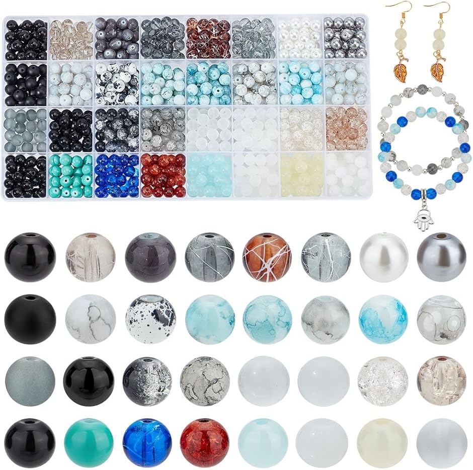 ガラスビーズ 32色 約960個 8mm アクセサリーパーツ 大理石 ビーズキット スペーサービーズ ビーズフレーム 材料 MDM( ミックス)