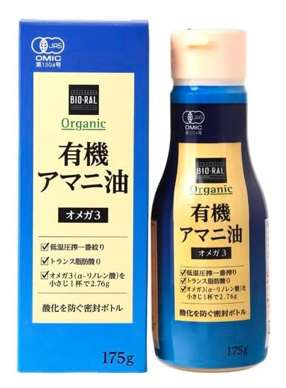 イタリア産の亜麻(あま)の種子からコールドプレス製法で丁寧に搾油したアマニ油(食品添加物・保存料不使用)です。アマニ油には、オメガ3系脂肪酸であるα-リノレン酸が豊富に含まれています。サラダやスープにかけて、またドレッシングなどにご使用ください。そのままでも美味しくお召し上がりいただけます。