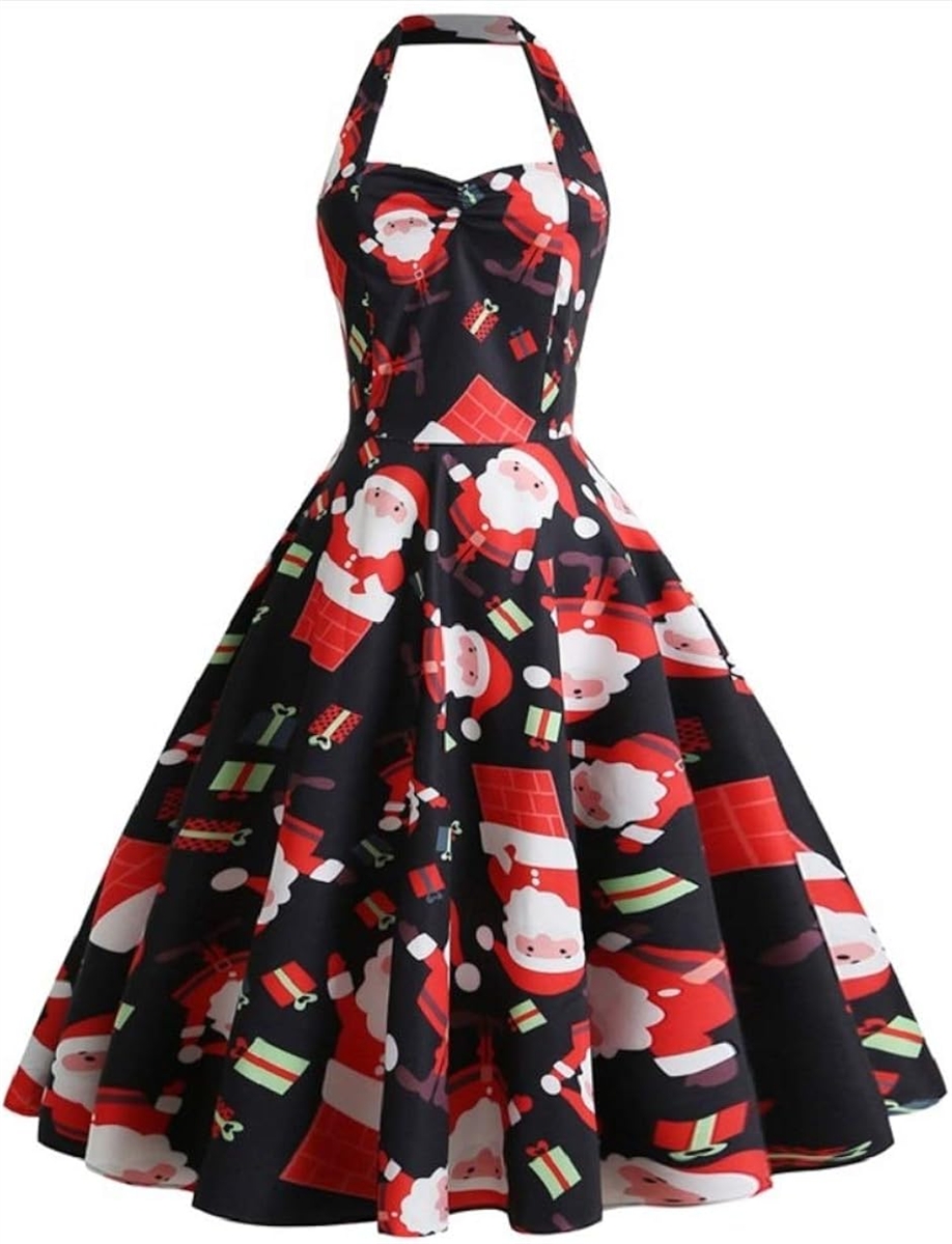 バリエーションコード : 2B8NVKY6V2・今年のクリスマスは可愛いサンタクロースのコスプレ衣装で楽しみましょう。・ドレス全面にサンタさん柄がプリントされ、クリスマスパーティーや年末のイベント等を大いに盛り上げてくれる事間違いなしです。・ネックホルダータイプのノースリーブドレスで背面にチューブとファスナーがありますので脱着も簡単でサイズもゆとりがあります。さらりと肌触りの良い生地で着心地も心も軽やか楽しんで下さい。・サンタ帽子は付属しておりませんドレスのみです。・M:丈 92cm バスト 84cm ウエスト 76cm / L:丈 94cm バスト 89cm ウエスト 84cm *丈はバスト上部部分よりドレス裾迄の長さ