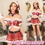 サンタ コスプレ 肩出し サンタ衣装 コスチューム レディース 大人女性用 仮装 イベント/ Malymoon チェック柄オフショルサンタ (407552)
