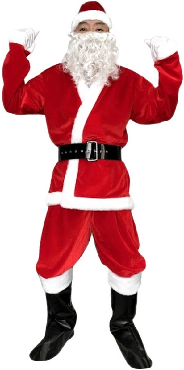 サンタクロース 衣装 毎年使える。 クリスマス コスチューム コスプレ メンズ 大人用 7点セット( レッド, XL)