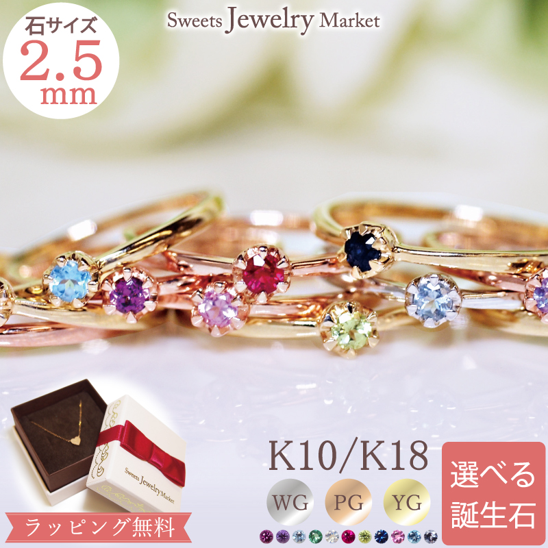 リング 指輪 誕生石 クラウン 王冠 レディース 女性 彼女 誕生日 記念日 プレゼント ギフト 18金 10金 K18 K10 金属アレルギー 対応 安心 ピンクゴールド