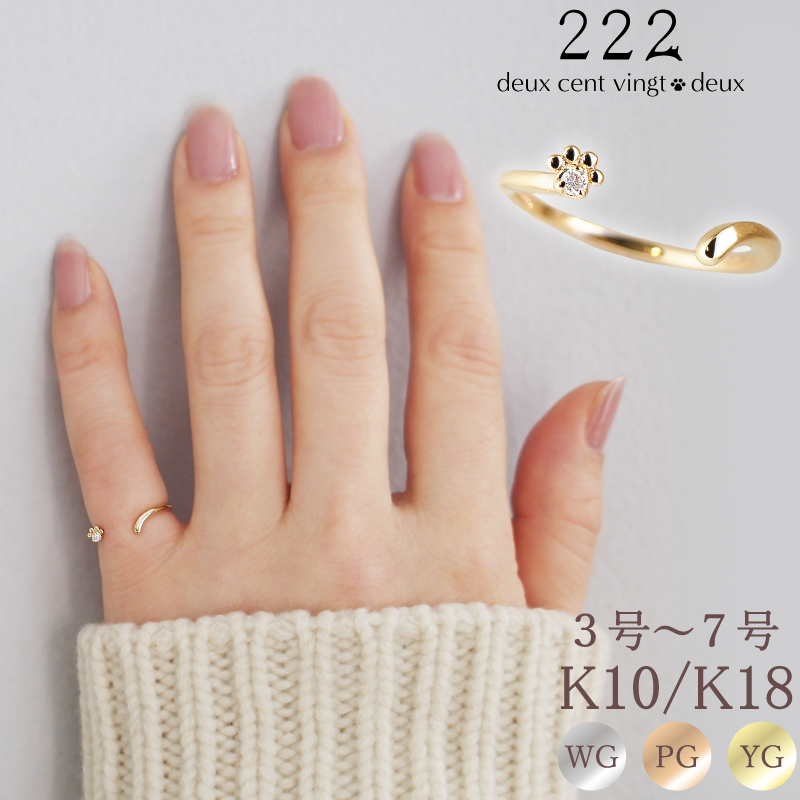 猫 肉球 ダイヤモンド フォークリング ピンキーリング しっぽ リング レディース 女性 誕生日 プレゼント ギフト 18金 10金 K18 ピンクゴールド ダイヤ 金アレ