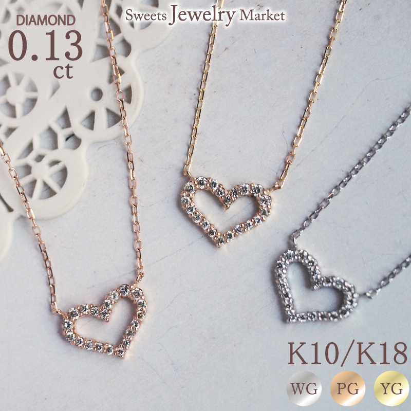ネックレス ダイヤモンド ハート オープンハート ペンダント レディース 女性 彼女 誕生日 記念日 プレゼント ギフト 18金 10金 金属アレルギー 対応 安心