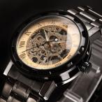 腕時計 男性向け SEWOR スケルトン 機械式 ゴールデン スチームパンク ステンレス鋼 フルスチール レロジオ Beige