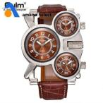 Oulm 海外ブランド クオーツ HP1167W スチームパンク レトロ レザーバンド 3タイムゾーン