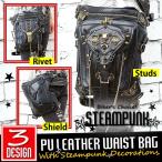 【送料無料!】PUレザースチームパンクウエストバッグ! 全3種類! ブラック 黒 ホルスター スタッズ リベット シールド バイクに! レッグバッグ ヒップバッグ