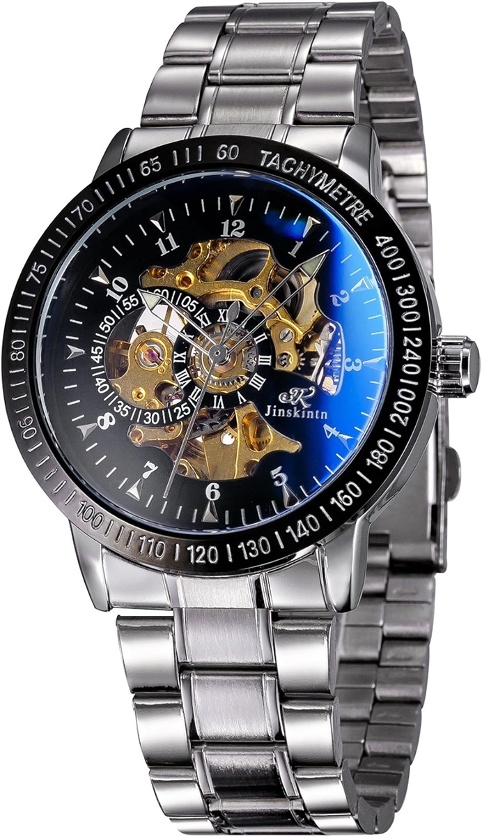 ・独特のサファイア・ブルーレイ・ガラス設計、角度によって、風防ガラスが青くに見えます。・スチームパンク風なスケルトン文字盤、機械式のムーブメントの動きが見られます。・エレガントなデザイン、凄く高級でオシャレに見えます。・自動巻き式ムーブメントを搭載するので電池寿命の問題から解放されます。・専用ギフトボックスと調節工具付きで発送しますので、プレゼントとしても大丈夫です。
