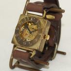 手作り腕時計 ハンドメイド 渡辺工房 手巻き式 裏スケルトン スクエア ジャンボブラス/メンズ レディース ユニセックス 男女兼用 ペアウォッチ お揃い