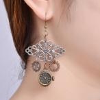 フックピアス レディース 女性用 アクセサリー スチームパンク風 レトロ ヴィンテージ アンティーク調 歯車 ギア 時計 ロングピアス 大ぶり 耳飾り